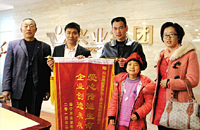 2014年3月19日,“興業(yè)愛心慈善基金”受助者,康復(fù)的小潘寧給我集團(tuán)送來錦旗。
