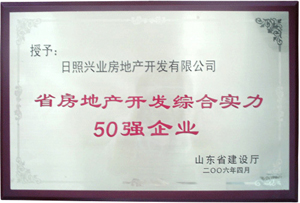 ·2006年4月,山東省建設(shè)廳授予興業(yè)房地產(chǎn)“省房地產(chǎn)開發(fā)綜合實(shí)力50強(qiáng)企業(yè)”