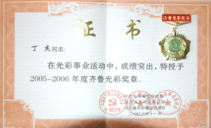 ·2006年11月,丁杰董事長獲得“2005-2006年度齊魯光彩獎(jiǎng)?wù)隆?br>
