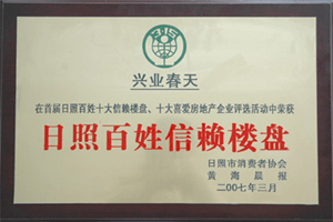 ·2007年3月,興業(yè)春天被日照市消費(fèi)者協(xié)會評為“日照百姓信賴樓盤”