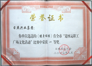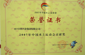 ·2007年9月,中國水上運(yùn)動會組委會授予日照興業(yè)集團(tuán)有限公司“中國水上運(yùn)動會貢獻(xiàn)獎”
