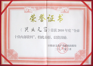 ·2011年3月,《興業(yè)之窗》榮獲2010年度“全市十佳內(nèi)部資料”