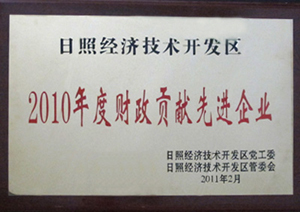 ·2011年2月,日照經(jīng)濟(jì)技術(shù)開(kāi)發(fā)區(qū)2010年度財(cái)政貢獻(xiàn)先進(jìn)企業(yè)