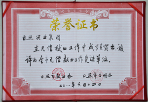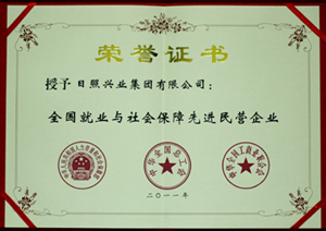 ·2011年1月,授予日照興業(yè)集團(tuán)“全國(guó)就業(yè)與社會(huì)保障先進(jìn)民營(yíng)企業(yè)”