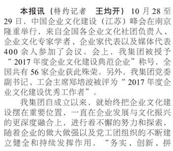 我集團(tuán)榮膺“全國企業(yè)文化建設(shè)典范企業(yè)”
