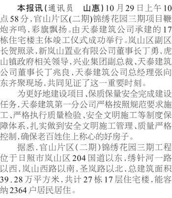 官同片區(qū)(二期)錦繡花園三期工程17棟住宅樓主體順利竣工