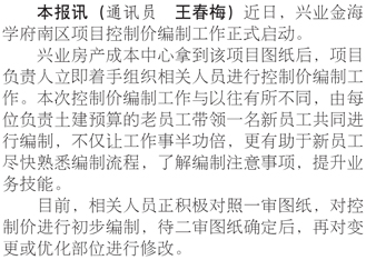 興業(yè)金海學(xué)府南區(qū)控制價(jià)編制工作啟動(dòng)