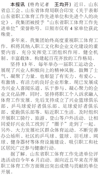 我集團(tuán)榮獲“山東省職工體育工作先進(jìn)單位”稱號