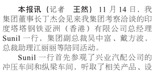 印度塔塔鋼鐵亞洲(香港)公司總經(jīng)理Sunil K Jha到我集團(tuán)洽談合作