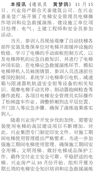 興業(yè)房產開展電梯安全培訓及應急救援演練
