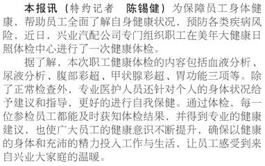 興業(yè)汽配公司組織職工健康體檢