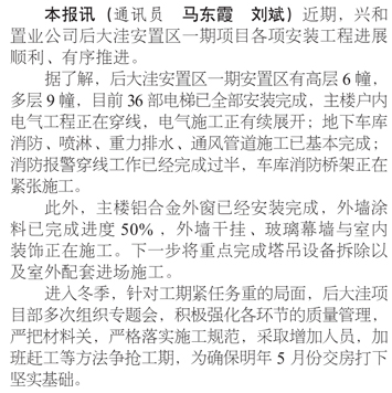 后大洼安置區(qū)一期安裝工程順利推進(jìn)