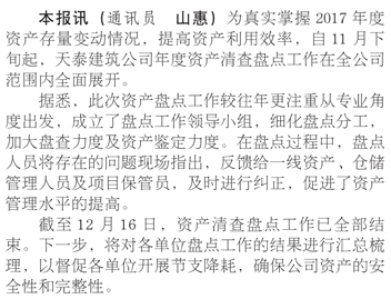 天泰建筑完成年度資產(chǎn)清查盤點工作