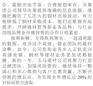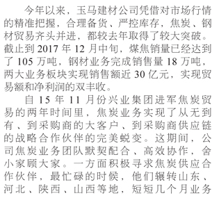 飛躍發(fā)展 玉馬建材公司焦炭、鋼材業(yè)務(wù)齊頭并進(jìn)