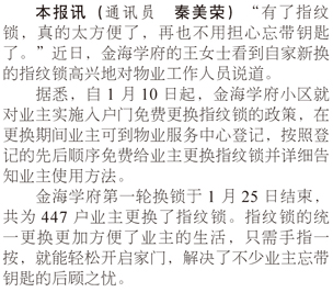 興業(yè)金海學(xué)府免費(fèi)為業(yè)主更換指紋鎖