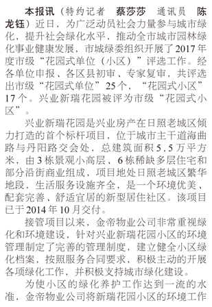 興業(yè)新瑞花園被評為市級“花園式小區(qū)”