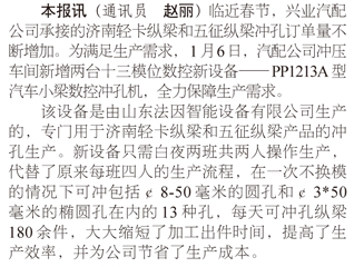 汽配公司沖壓車間再添新設(shè)備